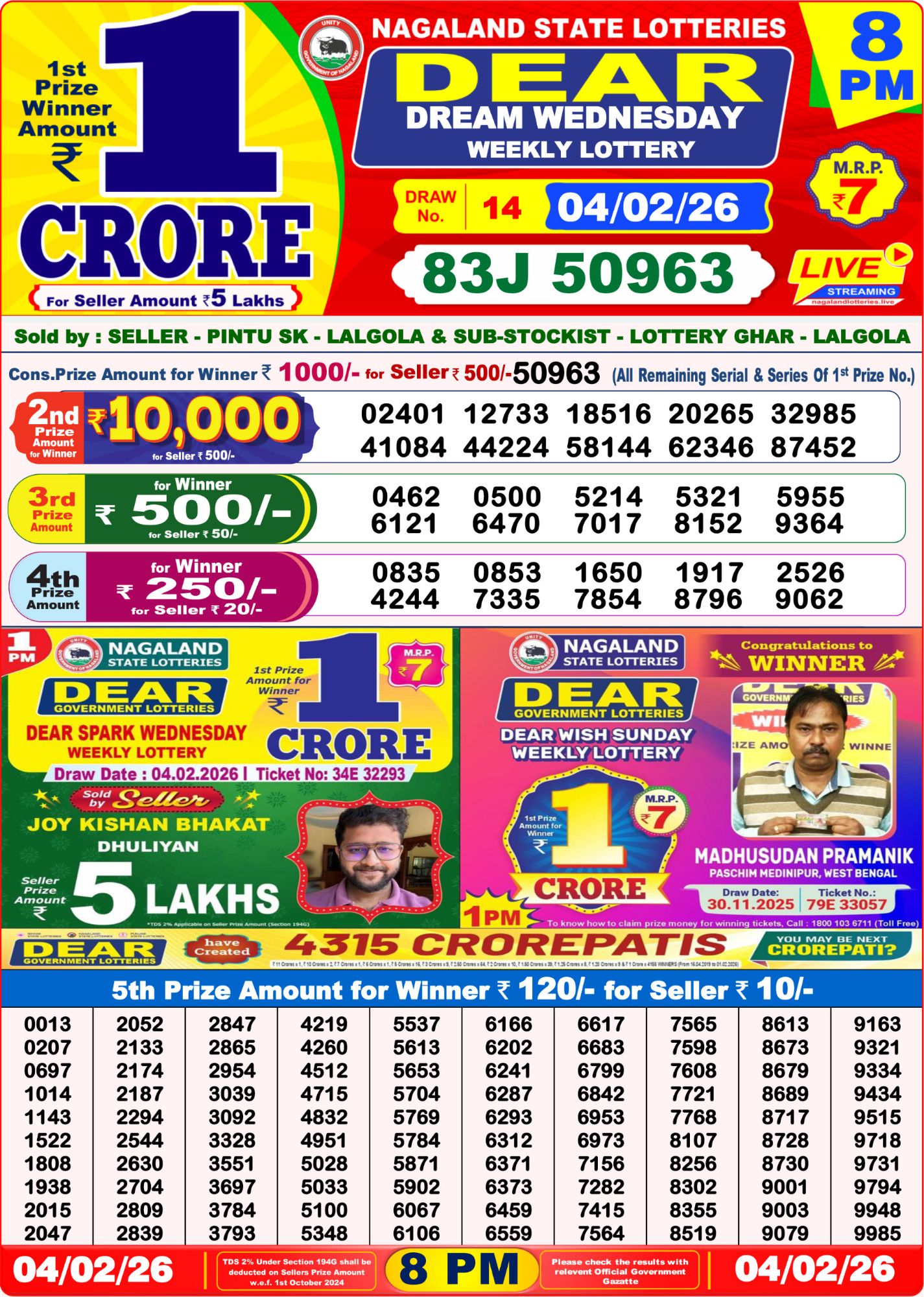 Nagaland Lottery Sambad Result for Dear Spark Wednesday weekly lottery result 1 PM – 04/02/2026 is now published here. Check Your Numbers Here.